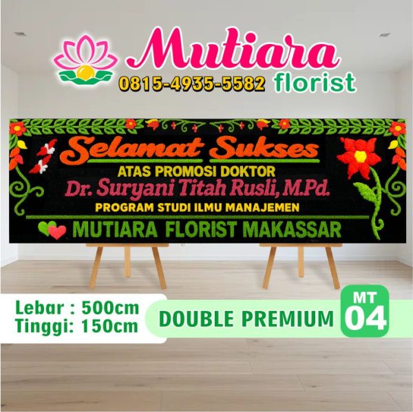 Selamat datang di Mutiara Florist Makassar, penyedia papan bunga ucapan terbaik di Makassar. Kami siap membantu Anda menyampaikan rasa bahagia, duka cita, atau ucapan selamat dengan rangkaian bunga yang indah dan penuh makna.