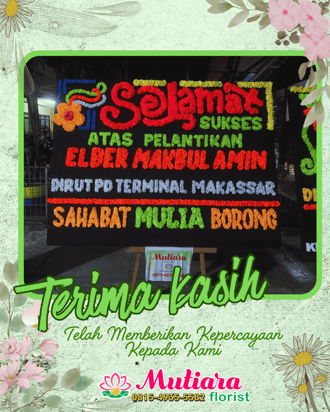 by adm1ns 09/06/2024 Pelantikan Dirut Terminal Makassar Terima Kasih Terima kasih telah mempercayakan pesanan Papan Bunga Ucapan Selamat & Sukses kepada kami. Semoga papan bunga ini dapat menyampaikan ucapan bahagia Anda dengan... Read More
