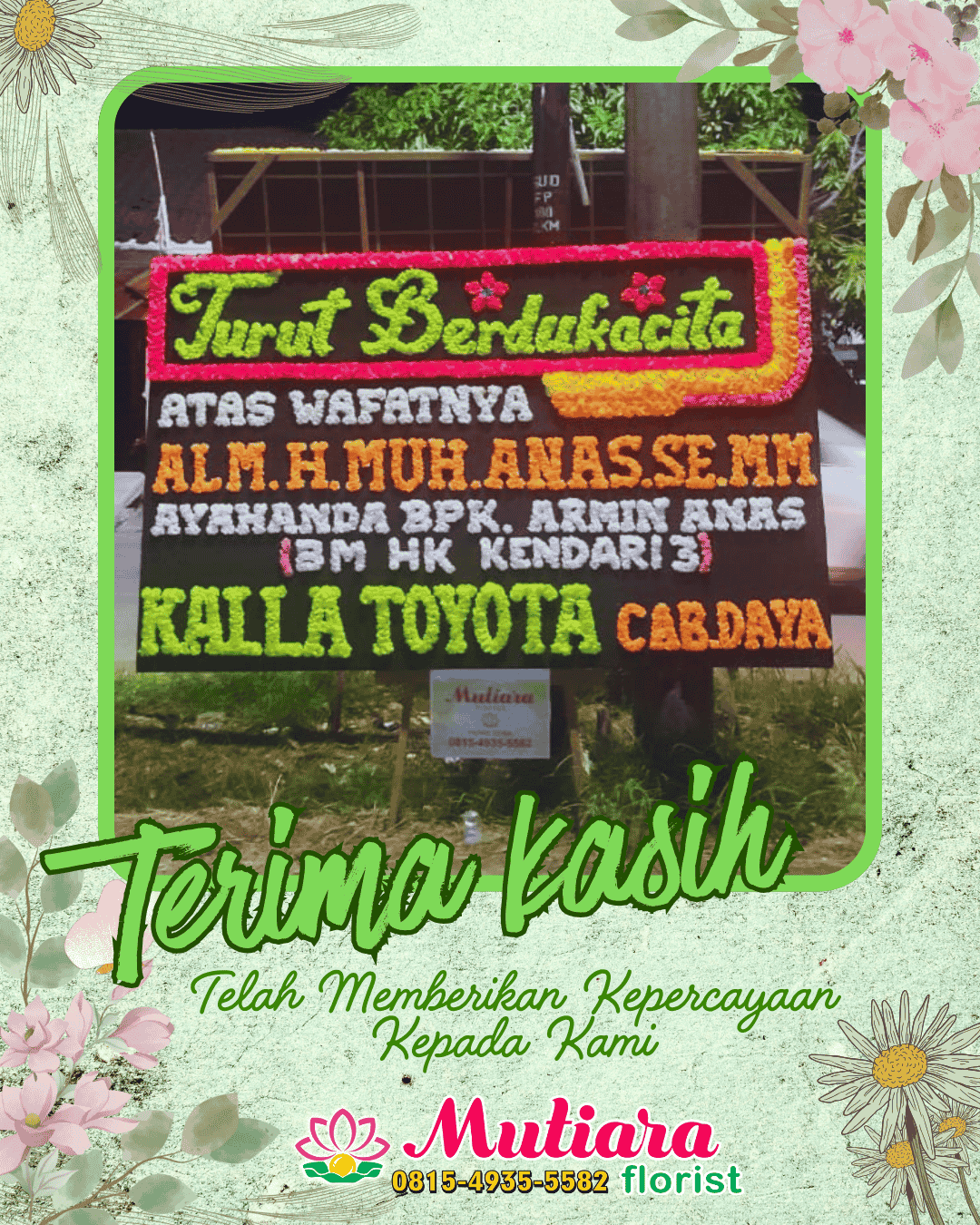 Terima kasih telah memesan Papan Bunga Ucapan Duka Cita 🙏